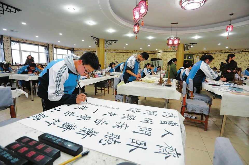 2月22日,榆次一中,学生们正在“育正气 扬清风”清廉主题书法大赛现场挥毫泼墨。据悉,除举办清廉主题书法大赛外,该校还通过组织开展清廉演讲比赛、征集清廉主题手抄报、观看清廉电影等,推进学校清廉文化建设。(曹伟摄)