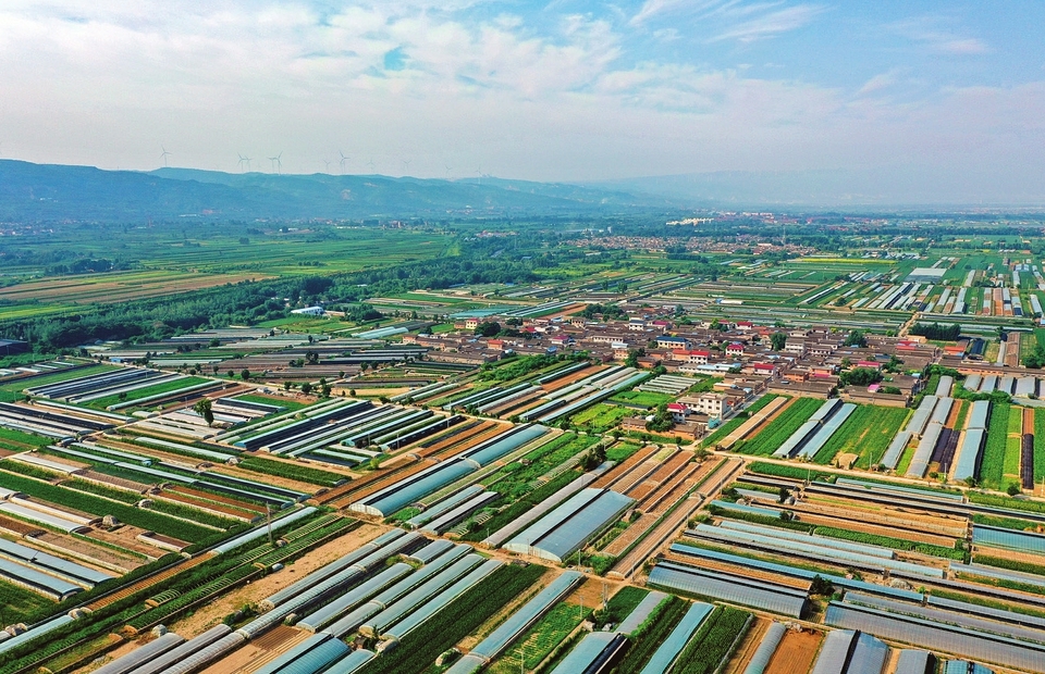 7月19日,夏县裴介镇广阔田野上,蔬菜大棚、碧绿树木、田间道路与多彩民居相互映衬,构成一幅生机盎然的生态美丽画卷。近年来,夏县持续优化农业产业结构、改善农村人居环境,农民的获得感、幸福感、安全感不断提升。(张秀峰 摄)