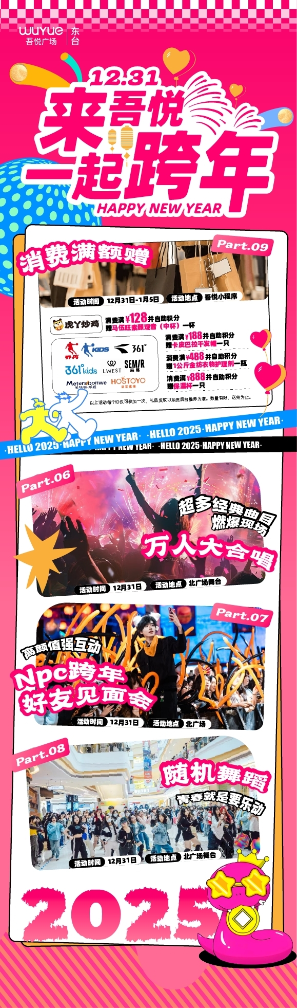 东台吾悦广场诚邀全体市民朋友前来参与跨年活动,共同迎接2025新的一年!
