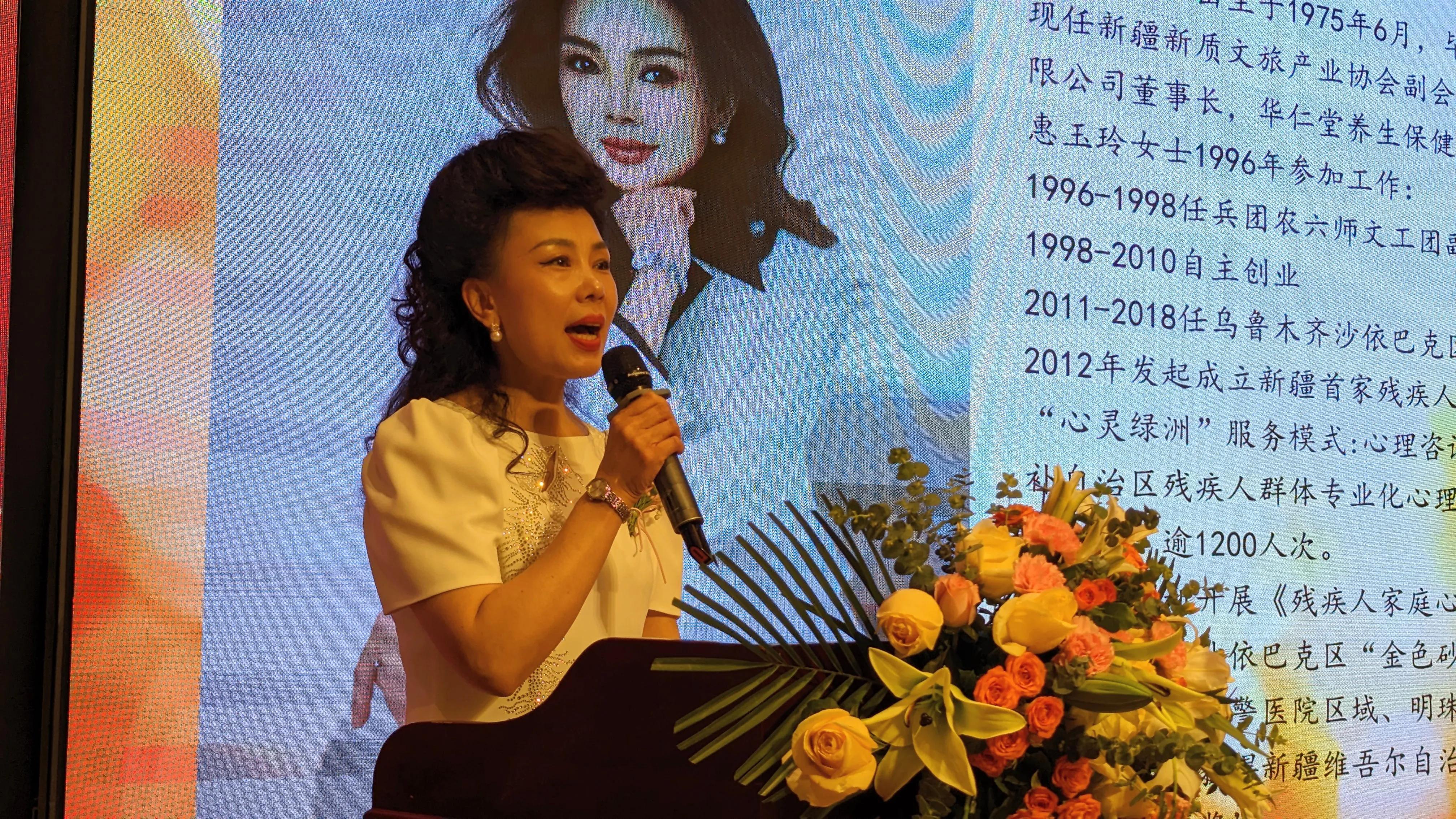 ▲新疆吉德堂健康咨询有限公司总经理、华仁堂中医养生馆创始人惠玉玲致欢迎辞。