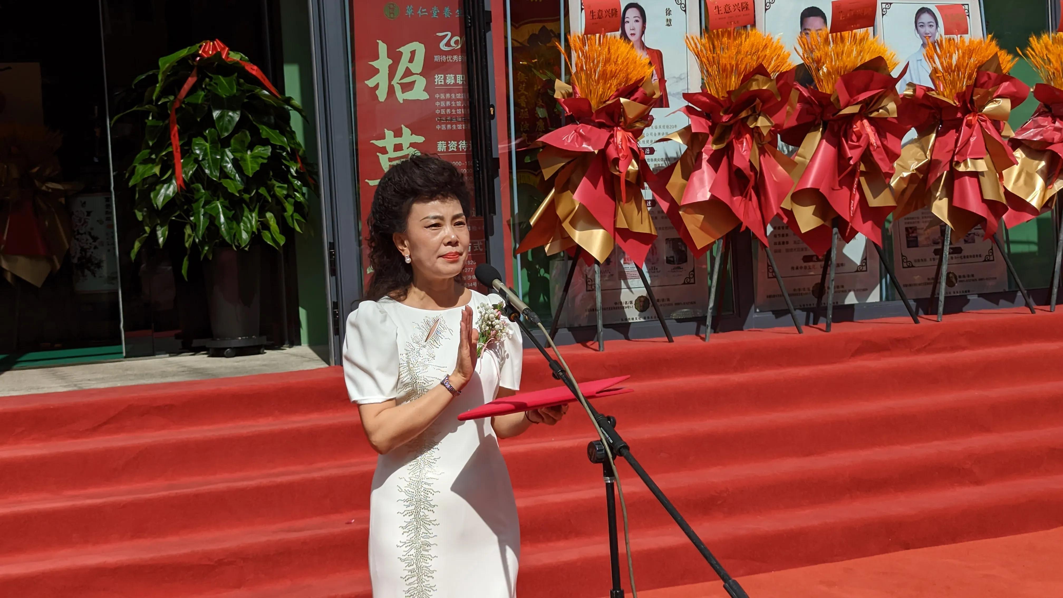 ▲ 在华仁堂中医养生馆开业启动,”仪式上,创始人惠玉玲发表感言。