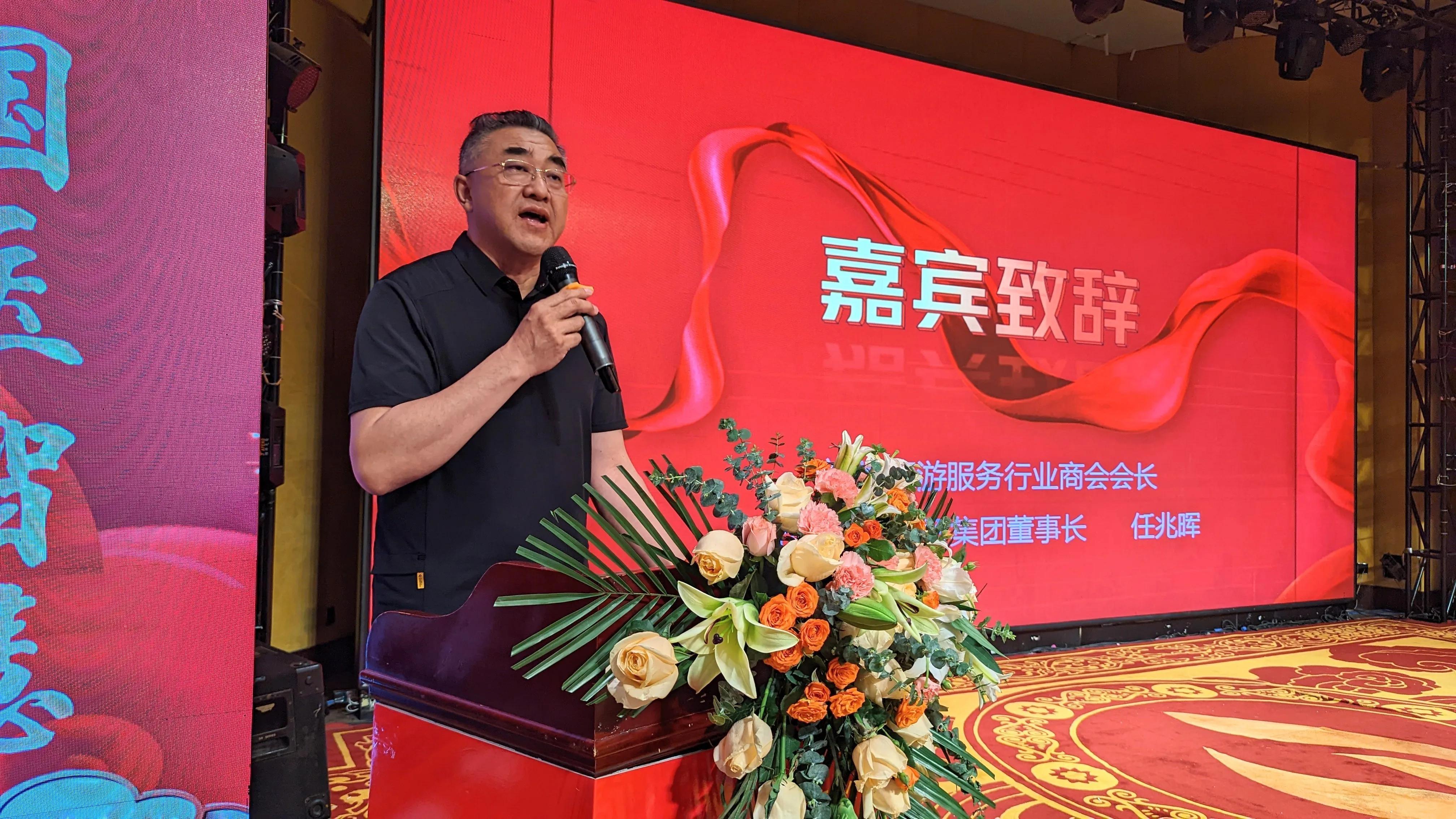 ▲ 在庆典启动现场,新疆旅游服务行业商会会长、新疆盛和投资集团董事长任兆晖致辞。
