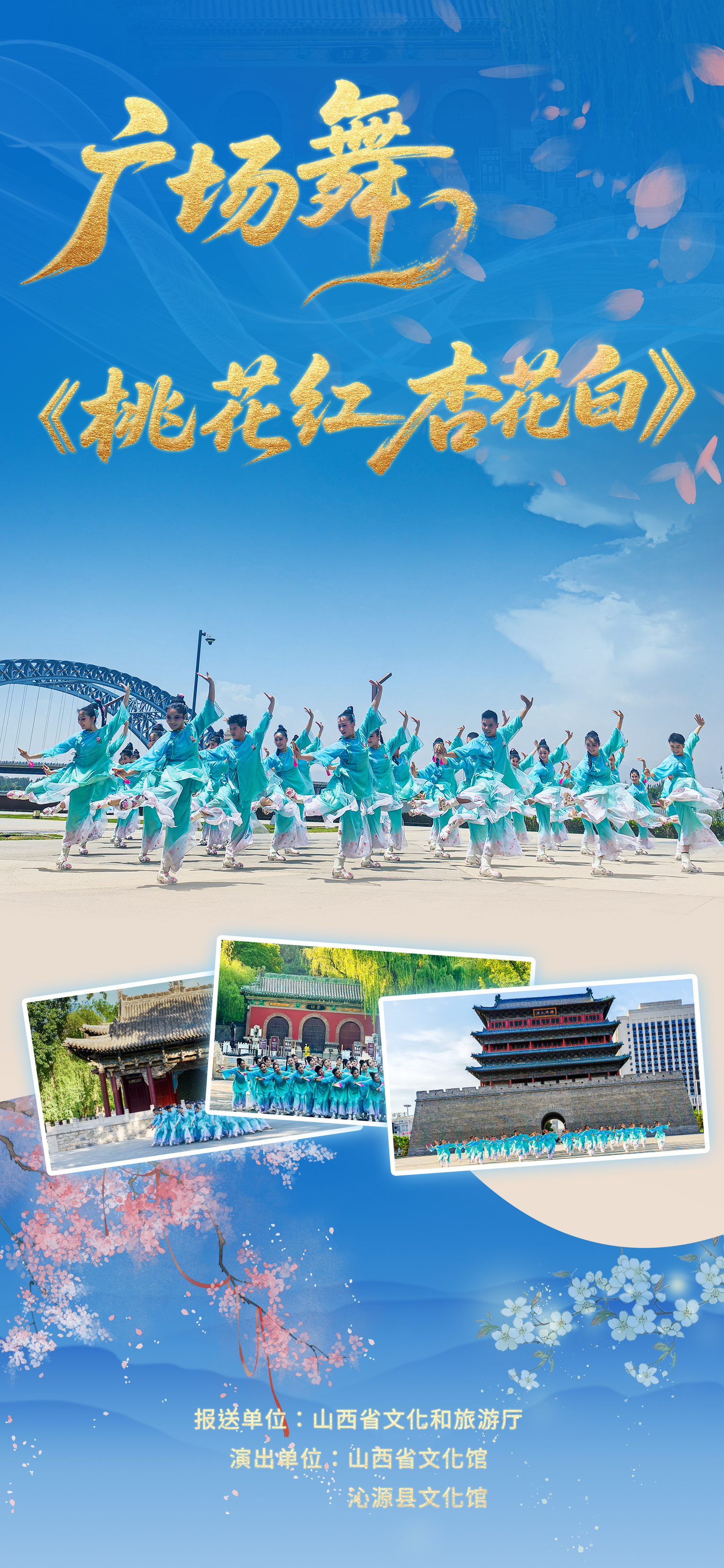 舞蹈中,演员们身着明艳服饰,以舒展的肢体语言描绘出祖国青山绿水间的生机盎然,每一个跳跃、每一次转身,都传递着三晋儿女对家乡的热爱、对生活的热情——既是播撒希望时的满怀憧憬,也是收获幸福时的欢歌笑语,更是山西大地蓬勃发展的生动写照。无论是广场上的群众自发演绎,还是舞台上的专业呈现,《桃花红 杏花白》都能迅速点燃气氛,成为连接传统与现代、沟通专业与大众的文化纽带。