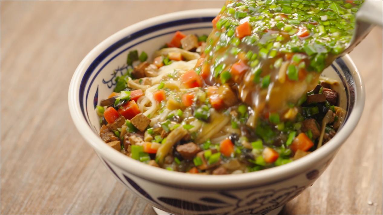在临汾中垛,一碗臊子面是待客的最高礼遇。手擀面条筋道有弹性,盖上用肉丁、土豆、豆腐、黄花菜炒制的臊子卤,浓香的酱汁裹满每一根面条。一口面一口卤,吃的就是这个家常味!