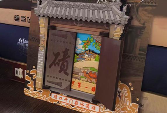 小巧金属冰箱贴,设计成碛口古镇大门的模样。“推开门”,背后是古镇码头的繁华旧梦与晋商足迹。贴在冰箱上,每一次开合,都仿佛推开一扇通往黄河古渡的历史之门。