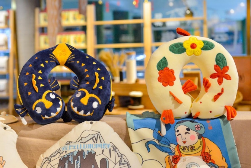 灵感来自省级非遗“云丘山花馍”,将传统面花造型转化为柔软治愈的U型枕。出行途中,它是颈间的温暖依靠,更是“能枕着的非遗”,可爱造型一路吸睛。