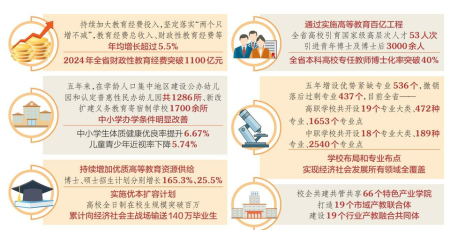 教育是国之大计、党之大计,也是每个家庭的心头事。“十四五”以来,在省委、省政府坚强领导下,全省教育系统深入贯彻落实习近平总书记关于教育的重要论述,全面贯彻党的教育方针,坚定落实教育优先发展战略,有力推动“十四五”规划各项指标任务全面完成,为“十五五”时期加快建设教育强省奠定了坚实基础。